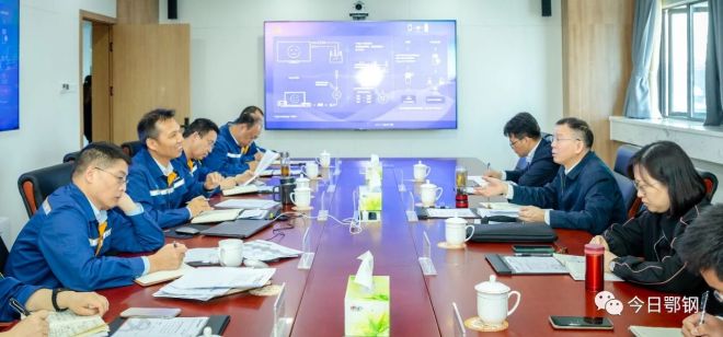 5月9日,中國寶武學習貫徹習近平新時代中國特色社會主義思想主題教育第二巡回指導組到鄂鋼調研主題教育工作,鄂鋼公司領導王虎祥、陸隆文、曾撼宇等參加調研。