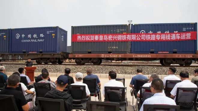 宏興鋼鐵鐵路專用線的建設,積極響應了國家推進大宗貨物運輸“公轉鐵”的政策號召,深入貫徹落實河北省委省政府和秦皇島市委市政府加快推進“公轉鐵”的戰略部署,是秦皇島市鋼鐵企業開通的第一條企業鐵路運輸專線,對於公司運輸結構優化、環保治理提升和強化清潔運輸,推動可持續高質量發展有著重要意義,也為降低公司物流成本、原材料供應的運輸穩定提供了有力保障。