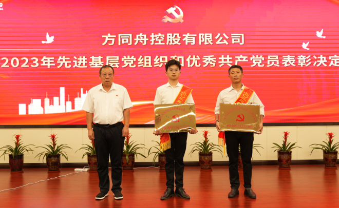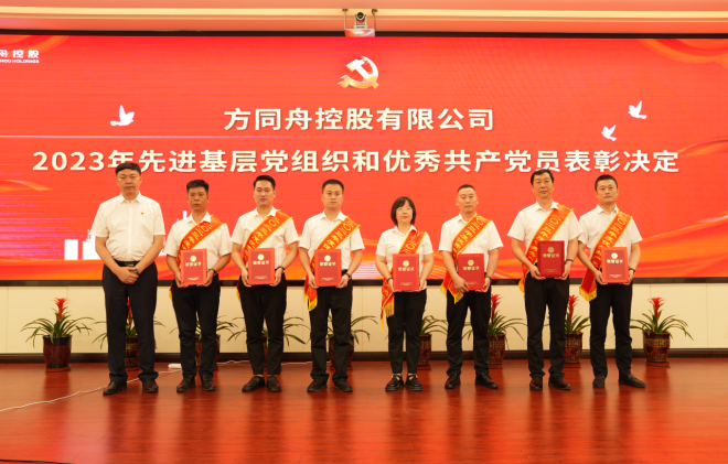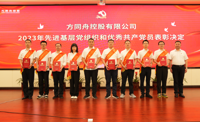 表彰大會在莊嚴的國歌聲中開幕。魏考增宣讀了《關於方同舟控股有限公司2023年度先進基層黨組織和優秀共產黨員表彰的決定》。此次共表彰先進基層黨組織6個;優秀共產黨員36名。受表彰的優秀共產黨員,他們是技術攻關研發人員、生產一線骨幹人員、部門基層管理人員,他們在各自崗位兢兢業業、盡職盡責,成為廣大黨員、職工學習的榜樣。