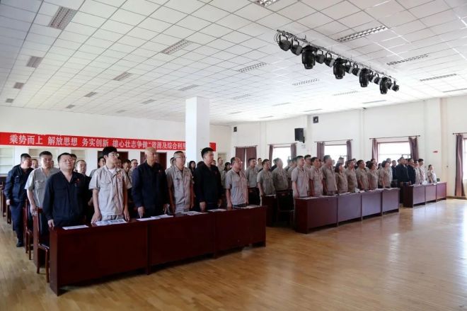 大會在莊嚴的《中華人民共和國國歌》中拉開序幕。麵對鮮紅的中國共產黨黨旗,黨委書記陳宏超帶領與會黨員重溫入黨誓詞,錚錚誓言響徹會場。