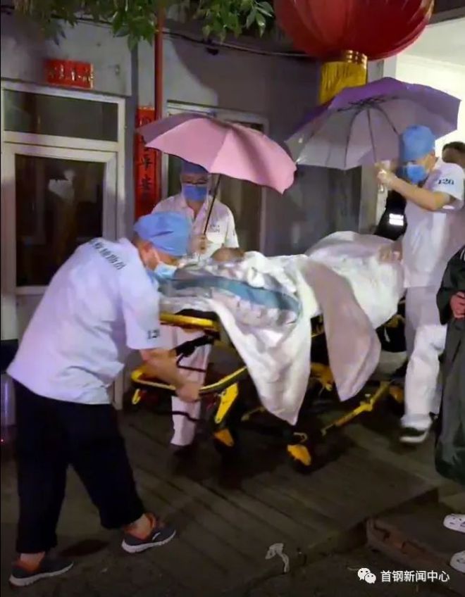 從下午的大雨滂沱,到次日淩晨的濕熱纏身。首鋼醫院兩輛急救車馬不停蹄,連跑了12趟,順利將12名病患、居民,轉運到具有相應資質的醫療機構。