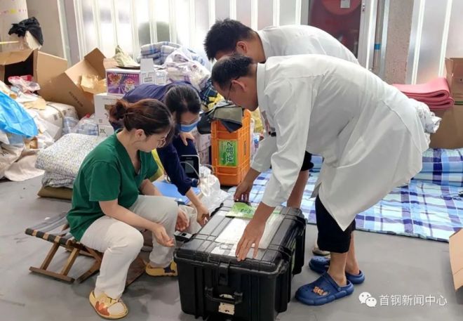 “昨天下午接到任務後,我們迅速統籌醫療資源,根據期間可能高發的心腦血管疾病、暑期腸道感染、神經內科疾病等情況,組建了以內科大夫為主的‘3醫3護’醫療服務隊。同時攜帶搶救用的體外除顫設備、心電監護儀、心電圖機,以及一些基礎病、常用慢性病藥,趕到了安置點。今天我們再根據現場情況,進行查漏補缺,全力以赴做好安置人員的醫療保障工作”,首鋼醫院醫務處處長陳新說。