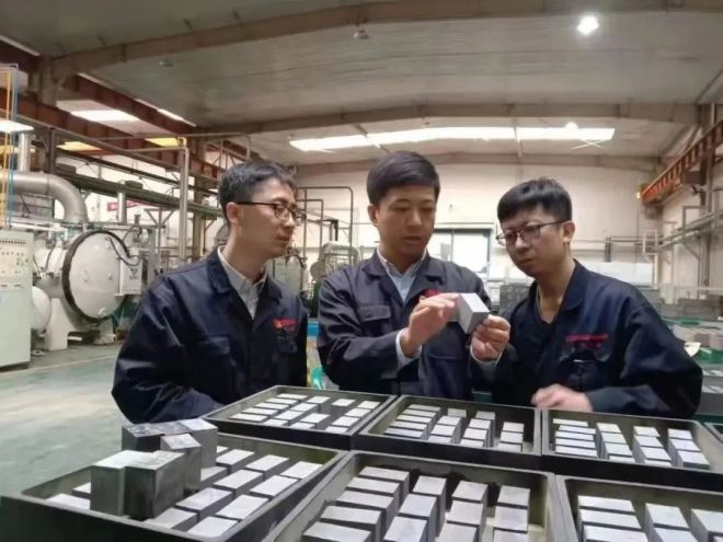 稀土磁性材料作為稀土元素最重要和最廣泛的應用領域,是稀土新材料大家族極其重要的一員。2022年,包鋼集團聚合力、彙眾勢,由北方稀土全麵推進內部四家磁材企業整合重組——北方稀土磁材公司應運而生,這是包鋼集團應行業整合發展大勢做出的一項戰略性部署,重點布局打造“稀土金屬——合金鑄片——高端磁體——磁組器件——終端應用”的產業鏈條,賦能風力發電、新能源汽車行業高質量發展,對於提高稀土產品就地轉化率,延伸產業鏈、提(ti)高(gao)附(fu)加(jia)值(zhi)具(ju)有(you)重(zhong)要(yao)意(yi)義(yi)。北(bei)方(fang)稀(xi)土(tu)磁(ci)材(cai)公(gong)司(si)不(bu)負(fu)眾(zhong)望(wang),立(li)足(zu)國(guo)家(jia)需(xu)要(yao),借(jie)助(zhu)發(fa)展(zhan)合(he)力(li),用(yong)好(hao)用(yong)足(zu)資(zi)源(yuan)優(you)勢(shi)和(he)當(dang)地(di)產(chan)業(ye)集(ji)群(qun)優(you)勢(shi),通(tong)過(guo)積(ji)極(ji)調(tiao)整(zheng)產(chan)品(pin)結(jie)構(gou)、提升技術裝備水平和產品品質,多管齊下拓展市場版圖,向著打造全球規模最大的稀土磁性材料合金工廠奮楫出發,現已具備年產9萬噸高性能釹鐵硼速凝薄帶、釹鐵硼磁體生產能力,產能位居全球第一。