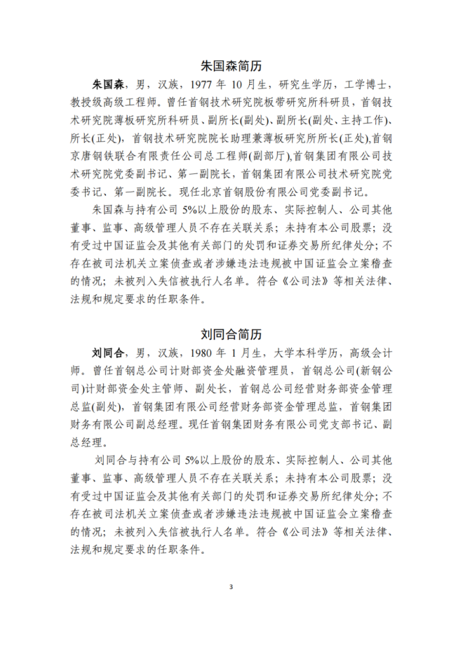 首鋼股份:劉建輝辭任董事、總經理,朱國森接任