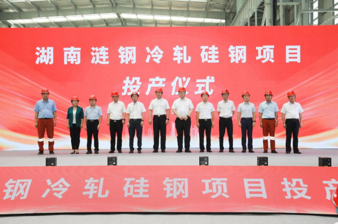 8月18日,由中冶南方總承包建設的湖南漣鋼冷軋矽鋼一期一步項目正式投產。婁底市委書記鄒文輝,市委副書記、市長曾超群;湖南鋼鐵集團黨委副書記、副董事長、總經理李建宇;漣鋼黨委書記、執行董事、總經理嚴立新等出席投產儀式。中冶南方黨委書記、董事長鄭劍輝受邀出席儀式並致辭。