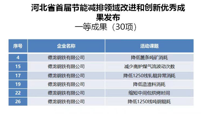 近日,在河北省發展改革委、省工業和信息化廳、省生態環境廳、省sheng節jie能neng協xie會hui和he省sheng質zhi量liang協xie會hui等deng五wu部bu門men聯lian合he開kai展zhan的de河he北bei省sheng首shou屆jie節jie能neng減jian排pai領ling域yu改gai進jin和he創chuang新xin優you秀xiu成cheng果guo征zheng集ji活huo動dong中zhong,經jing行xing業ye專zhuan家jia評ping審shen,邢xing台tai德de龍long申shen報bao的de“降低篦條噸礦消耗”“減少高爐煤氣流波動次數”等6項成果獲評一等獎。