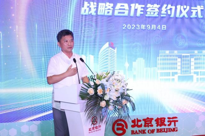 9月4日,在2023年中國國際服務貿易交易會期間,北京建龍重工集團有限公司(簡稱建龍集團)與北京銀行股份有限公司(簡稱北京銀行)在首鋼園簽署戰略合作協議。建龍集團副總裁鄭鵬與北京銀行副行長戴煒分別代表雙方簽署協議。建龍集團董事長、總裁張誌祥,北京銀行黨委書記、董事長霍學文見證簽約。