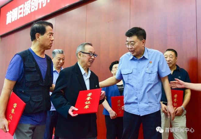 首鋼集團黨委書記、董事長趙民革為從事首鋼新聞工作30年、作(zuo)出(chu)貢(gong)獻(xian)的(de)新(xin)聞(wen)工(gong)作(zuo)者(zhe)代(dai)表(biao)頒(ban)發(fa)榮(rong)譽(yu)證(zheng)書(shu),並(bing)和(he)中(zhong)宣(xuan)部(bu)傳(chuan)媒(mei)監(jian)管(guan)局(ju)行(xing)政(zheng)協(xie)調(tiao)處(chu)處(chu)長(chang)丁(ding)智(zhi)勇(yong),中(zhong)國(guo)記(ji)協(xie)國(guo)內(nei)工(gong)作(zuo)部(bu)副(fu)主(zhu)任(ren)王(wang)佳(jia),北(bei)京(jing)市(shi)國(guo)資(zi)委(wei)一(yi)級(ji)巡(xun)視(shi)員(yuan)翟(zhai)賢(xian)軍(jun),北(bei)京(jing)市(shi)委(wei)宣(xuan)傳(chuan)部(bu)傳(chuan)媒(mei)監(jian)管(guan)處(chu)副(fu)處(chu)長(chang)、一(yi)級(ji)調(tiao)研(yan)員(yuan)張(zhang)俊(jun)傑(jie),中(zhong)國(guo)企(qi)業(ye)報(bao)協(xie)會(hui)會(hui)長(chang)俞(yu)太(tai)銀(yin)共(gong)同(tong)啟(qi)動(dong)首(shou)鋼(gang)融(rong)媒(mei)體(ti)中(zhong)心(xin)投(tou)運(yun)。首(shou)鋼(gang)集(ji)團(tuan)黨(dang)委(wei)副(fu)書(shu)記(ji)邱(qiu)銀(yin)富(fu)主(zhu)持(chi)會(hui)議(yi)。石(shi)景(jing)山(shan)區(qu)融(rong)媒(mei)體(ti)中(zhong)心(xin)副(fu)主(zhu)任(ren)譚(tan)一(yi)兵(bing),首(shou)鋼(gang)集(ji)團(tuan)總(zong)部(bu)部(bu)門(men)領(ling)導(dao),各(ge)單(dan)位(wei)分(fen)管(guan)宣(xuan)傳(chuan)工(gong)作(zuo)的(de)領(ling)導(dao)、宣傳部長,集團黨委宣傳部和新聞中心全體人員,首鋼日報社退休老同誌代表參加會議。