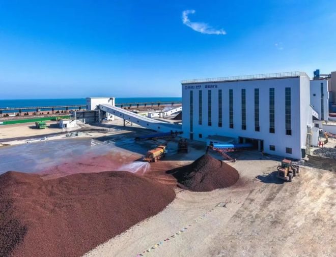 項目地點位於石臼街道的日照港石臼港區東區,毗鄰礦石流程化堆場,通過皮帶機與東區礦石堆場聯通。項目占地35畝,由合資公司山港昌瑞達礦業租賃港口土地,新建4套塊礦篩分係統,年篩分處理1500萬噸進口鐵礦石塊礦,最大處理能力7500噸/小時。項目充分發揮了上遊聯動礦山,下遊攜手鋼廠的樞紐作用,以鐵礦石篩分、精選、混配等延長供應鏈綜合服務體係,切實將港口資源、樞紐優勢變成高質量發展的經濟流量、產業增量。