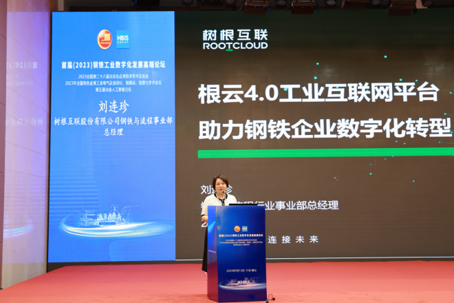 會上,樹根互聯鋼鐵與流程行業事業部總經理劉連珍以“根雲4.0工業互聯網平台助力鋼鐵企業數字化轉型”為題發表主題演講,向與會嘉賓分享樹根互聯在鋼鐵冶金製造企業數字化轉型過程中的方案案例。