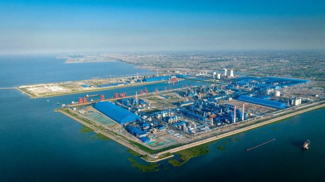 該項目於2020年8月28日開工建設,伴隨著抗擊新冠疫情、抵禦台風、寒冬酷暑等給工程建設帶來的巨大挑戰,實現了沿海灘塗變身鋼鐵新城,為鋼鐵工業助力中國式現代化發展提供了範本。