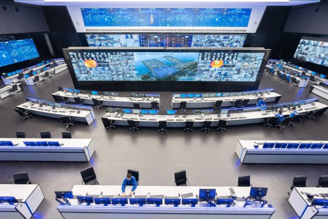 這是行業內基礎支撐條件最優的鐵前集控中心,集成了100多套PLC/DCS係統、彙集1000多幅監控畫麵,圍繞生產、環保、物流、安全、能源等領域,建設了一係列智能設備,融合人工智能等技術,全麵實現智能遠程操作和統一管理、統一調度、實時優化。