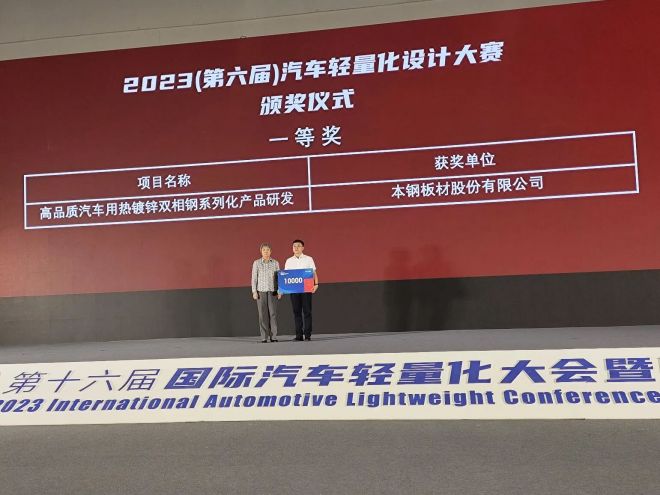 會議期間,本鋼技術中心主任劉宏亮還作了題為《基於預氧化技術的高穩定性鍍鋅雙相鋼係列開發》的(de)報(bao)告(gao),對(dui)本(ben)鋼(gang)鍍(du)鋅(xin)高(gao)強(qiang)鋼(gang)穩(wen)定(ding)生(sheng)產(chan)技(ji)術(shu)進(jin)行(xing)了(le)推(tui)介(jie),並(bing)以(yi)汽(qi)車(che)輕(qing)量(liang)化(hua)技(ji)術(shu)創(chuang)新(xin)戰(zhan)略(lve)聯(lian)盟(meng)專(zhuan)家(jia)委(wei)專(zhuan)家(jia)身(shen)份(fen)主(zhu)持(chi)了(le)先(xian)進(jin)汽(qi)車(che)鋼(gang)及(ji)其(qi)成(cheng)形(xing)專(zhuan)題(ti)報(bao)告(gao)會(hui)。本(ben)鋼(gang)集(ji)團(tuan)申(shen)報(bao)的(de)《高品質汽車用熱鍍鋅雙相鋼係列化產品研發》摘得2023(第十六屆)汽車輕量化設計大賽唯一的一等獎。