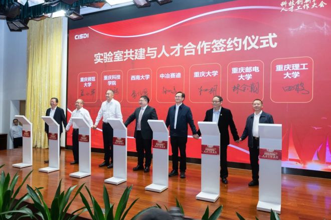 中冶賽迪黨委副書記、總經理肖鵬代表公司與重慶大學、西南大學、重慶郵電大學、重慶理工大學、重慶科技學院、重慶師範大學六所高校聯合簽署合作框架協議,將圍繞實驗室共建、科研課題共研、人才聯合培養等開展全麵合作。