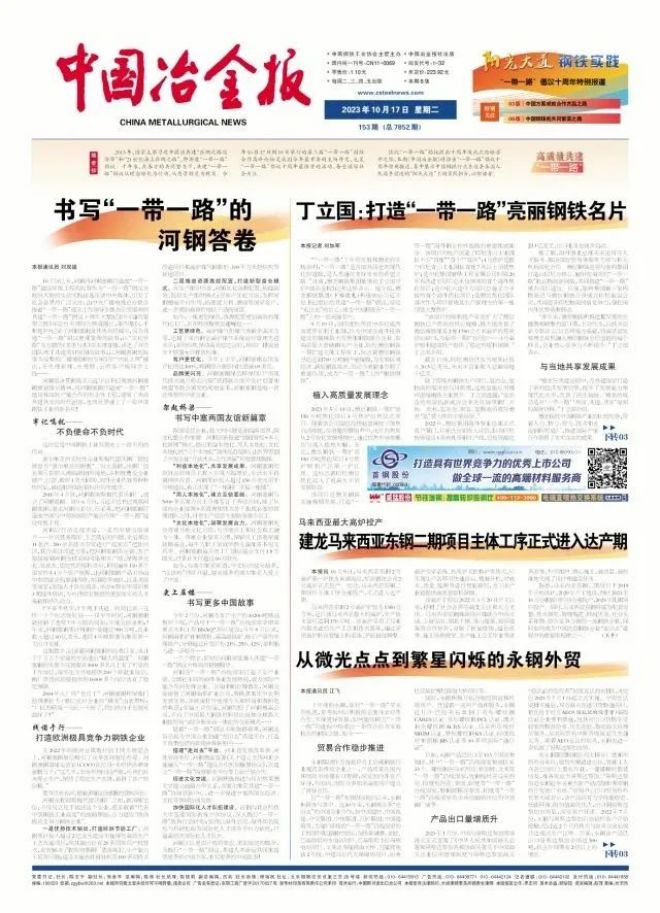 “‘一帶一路’十年的發展和德龍的實踐表明:‘一帶一路’是各國共同走向現代化的道路,是人類通往美好未來的希望之路。”日前,德龍鋼鐵集團董事長丁立國對《中國冶金報》記者這樣表示。他介紹,德龍鋼鐵集團(下稱德龍)積極響應習近平總書記提出的共建“一帶一路”倡議,堅定“走出去”的信心,成為中國鋼鐵在“一帶一路”上的一張亮麗名片。