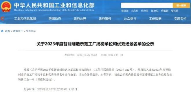此次遴選是為貫徹落實國家《“十四五”智能製造發展規劃》,工業和信息化部、國家發展改革委、財政部、國務院國資委、市場監管總局聯合開展2023年度智能製造試點示範行動,以揭榜掛帥方式建設一批智能製造示範工廠和智慧供應鏈,在各行業、各領域選樹一批排頭兵企業,推進智能製造高質量發展。