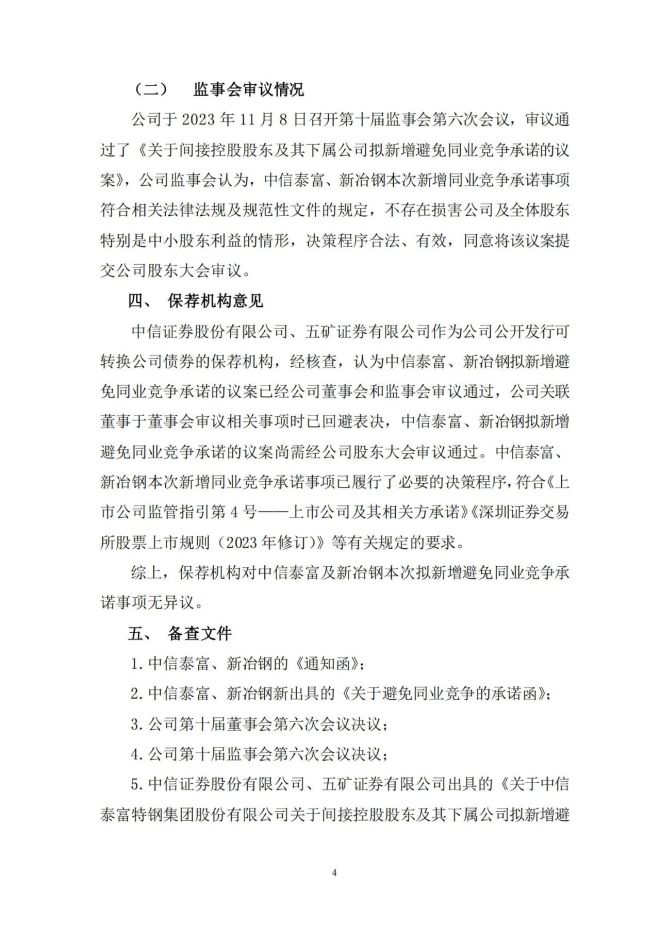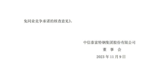對於因前述收購導致的同業競爭問題,中信泰富、新冶鋼於 2023年 11 月 7 日分別作出《關於避免同業競爭的承諾函》。