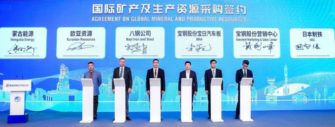 在全球集中采購簽約儀式上,八鋼所屬的國際貿易公司與歐亞資源、蒙古能源兩家全球知名供應鏈合作夥伴進行了國際礦產及生產資源簽約,簽約金額逾50億人民幣。