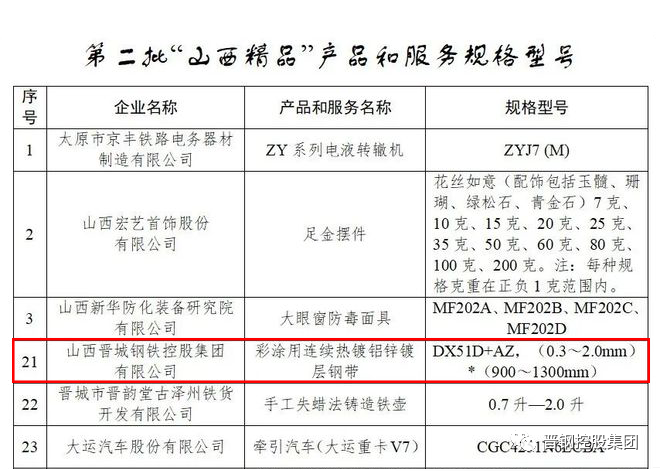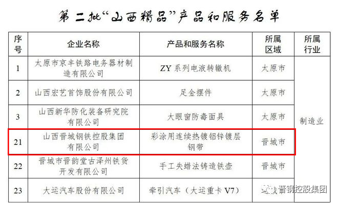 “山西精品”公用品牌建設工作是山西省政府打造全區域、全行業、高影響力的公用品牌建設重點工程,旨在全麵拓展“山西精品”公用品牌知名度和影響力,實現“山西精品”全方位推動高質量發展的目標任務。晉鋼控股集團彩塗用鍍鋁鋅鍍層鋼帶獲得“山西精品”榮譽,必將助力冷係產品更上一層樓,為集團轉型升級提供強力支撐。