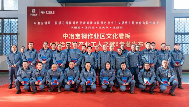 12月20日,中冶寶鋼隆重舉行作業區文化看板暨《中冶寶鋼產業工人之歌》專著發布會。中冶寶鋼黨委書記、董事長王振智,黨委專職副書記齊冬平出席儀式為中冶寶鋼作業區文化看板揭牌,並為中冶寶鋼品牌人物、勞模、“金牛”作業區作業長、員工代表贈書。儀式上,齊冬平為發布會致辭。上海市勞動模範、中冶寶鋼品牌人物、基層作業長董富剛現場誦讀了王振智為《中冶寶鋼產業工人之歌》所作書序。