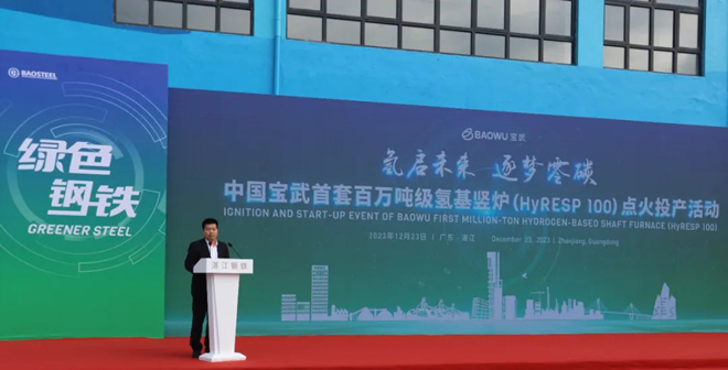 “我宣布,中國寶武首套百萬噸級氫基豎爐點火投產!”12月23日,中國寶武黨委書記、董dong事shi長chang胡hu望wang明ming下xia達da點dian火huo令ling並bing宣xuan布bu項xiang目mu點dian火huo投tou產chan,標biao誌zhi著zhe國guo內nei首shou套tao百bai萬wan噸dun級ji氫qing基ji豎shu爐lu正zheng式shi投tou入ru工gong業ye化hua運yun營ying,更geng標biao誌zhi著zhe以yi寶bao武wu為wei代dai表biao的de中zhong國guo鋼gang鐵tie工gong業ye即ji將jiang開kai啟qi探tan索suo零ling碳tan綠lv色se轉zhuan型xing發fa展zhan的de嶄zhan新xin篇pian章zhang。