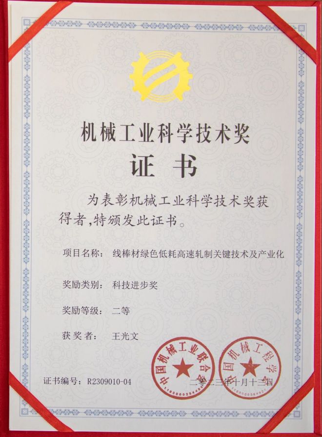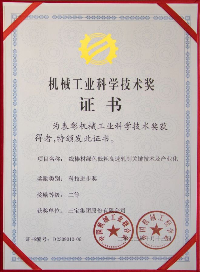 近日,中國機械工業聯合會和中國機械工程學會聯合公布“機械工業科學技術獎”獲獎名單,其中,由王光文董事長帶領三寶團隊完成的“線棒材綠色低耗高速軋製關鍵技術及產業化”項目榮獲科技進步獎二等獎,這是對三寶集團在機械工業領域所取得科技成果的極高讚譽。