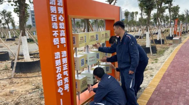 秉承“寓教於景、多維互動、倡廉有形、教育無聲”的設計理念打造職工“家門口”的文化高地、廉潔防線——“親清園”,讓職工在寓教於“景”連“廉”看中感受廉潔文化的熏陶和教育,在叩問初心的回顧中自省自警自勵,在正風肅紀的鍛造中親而有度、清而有為,以親清統一的工作思路夯實清廉企業建設的每一步,實現政治清明、企業清廉、幹部清正、文化清朗。