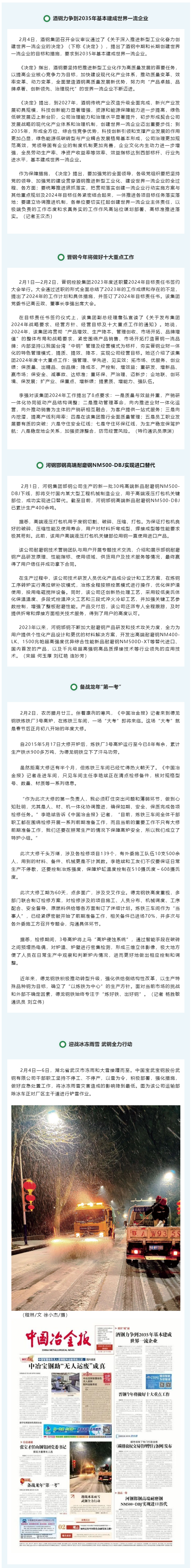 酒鋼力爭到2035年基本建成世界一流企業;晉鋼今年將做好十大重點工作……