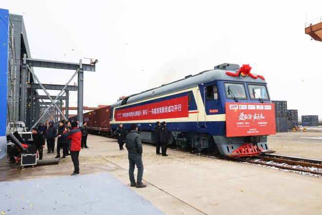 緩緩出站的晉南鋼鐵中亞班列