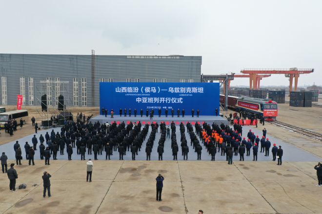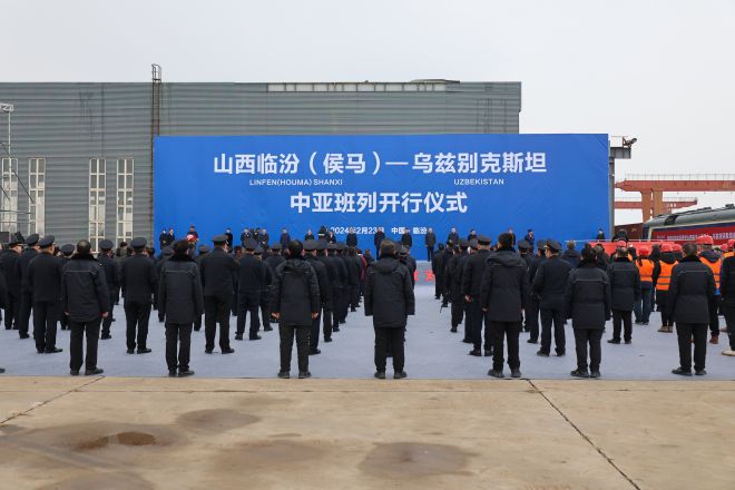 2月23日,伴隨著汽笛聲響起,一列滿載鋼材的班列從山西侯馬方略站台緩緩駛出,開往中亞國家烏茲別克斯坦。這是晉南鋼鐵綠色型鋼首次“走出”國門,進入國際市場。