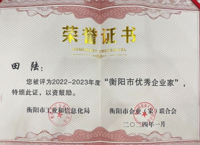 鐳目董事長田陸榮獲“衡陽市優秀企業家”稱號