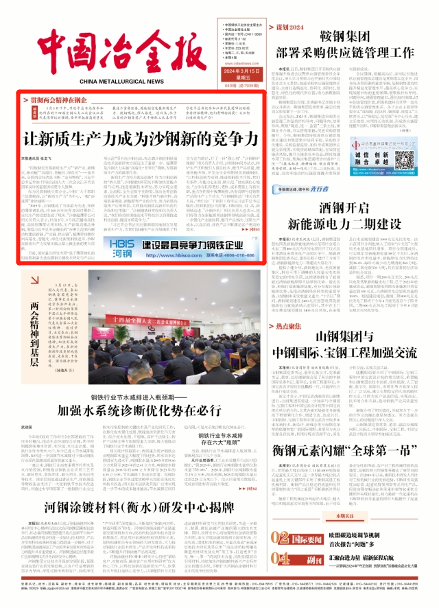 【1】 凡本網注明"來源:中國冶金報—中國鋼鐵新聞網"的所有作品,版權均屬於中國鋼鐵新聞網。媒體轉載、摘編本網所刊 作品時,需經書麵授權。轉載時需注明來源於《中國冶金報—中國鋼鐵新聞網》及作者姓名。違反上述聲明者,本網將追究其相關法律責任。