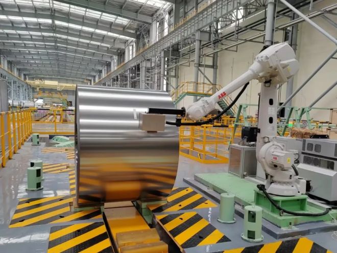 “我們按照‘燈塔工廠’標準建設,自動化率位列行業第一方陣。”該公司生產副總經理鄧偉全介紹,產品從原材料到成品,所有生產、轉運、工藝管控、性能檢測等環節實現“無人化”操作,人工減少70%以上,鋼卷頭尾損耗降低90%。