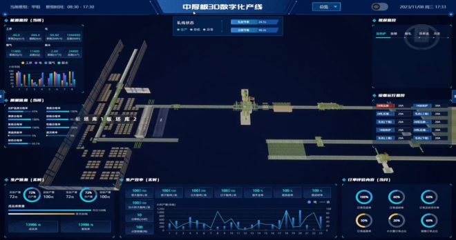 在廣東韶鋼7號高爐項目,打造了高爐冷卻水係統可視化運維平台,實現2700多根冷卻水管運維狀態的精細化、可視化管控;在陝西漢鋼中厚板項目,打造了數字孿生產線,依托實時數據實現每塊板坯可定位追蹤、數字模型和物理工廠實時聯動的全產線數字孿生。正在實施的河南周口寬厚板全流程數字孿生項目,將打造集設備管理、安全監控、能源管網管控等多功能為一體的產線三維可視化運維平台和數字孿生示範產線。