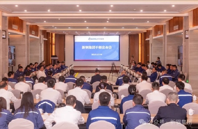 4月19日,新鋼集團召開幹部宣布會。中國寶武黨委常委、副總經理高建兵以視頻方式出席會議並講話,新鋼集團黨委書記、董事長劉建榮主持會議。中國寶武鋼鐵製造業發展部、黨委組織部,新鋼集團領導班子成員、總經理助理、二級單位黨政負責人參加會議。