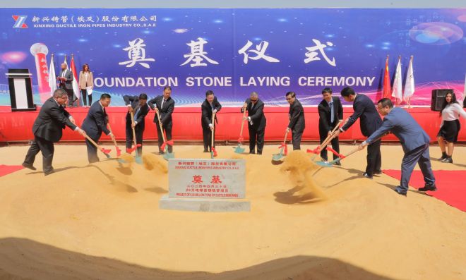 4月30日,新興鑄管埃及25萬噸鑄管項目在阿拉伯埃及共和國中埃·泰達蘇伊士經貿合作區舉行開工奠基儀式,標誌著新興鑄管第一個海外鑄管生產基地正式進入建設階段。