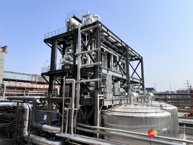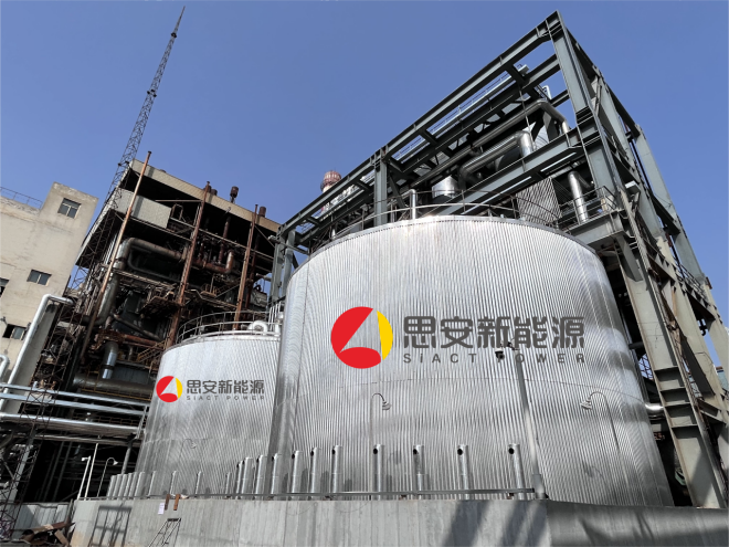 近日,由山西建龍實業有限公司(簡稱“山西建龍”)與思安新能源股份有限公司(簡稱“思安新能源”)合作開發的5MW熔鹽儲能項目成功實現並汽發電。該項目代表著國內首創、行業首套煤氣熔鹽儲熱調峰係統的誕生,標誌著鋼鐵行業在儲能技術領域的重大突破。