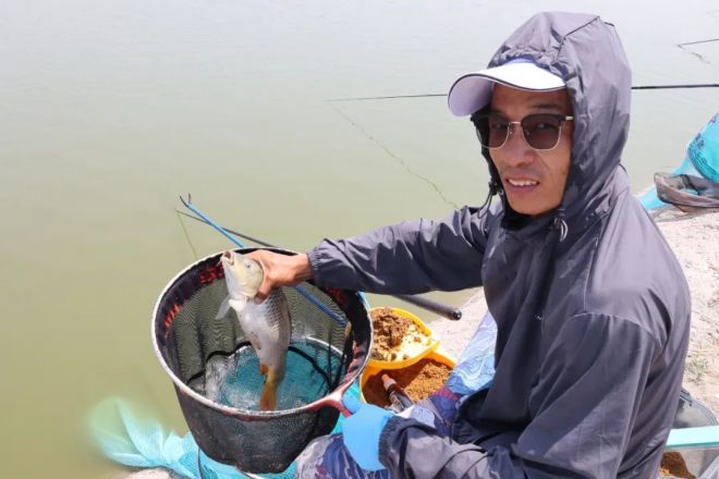 在釣魚比賽現場,參賽選手經過抽簽確定釣位,到達指定位置準備線組、調漂。隨著裁判員一聲令下,選手們各顯神通,掛餌、拋竿、觀漂、提竿,隻見一陣陣拍打水花的聲音傳來,一條條鮮活的魚兒被收入囊中。盡管天氣十分炎熱,但大家絲毫沒有受其影響,個個拚手速、拚技巧、拚耐力,和時間賽跑,和魚兒博弈。經過上下半場4個小時的比拚,徐暉奪得釣魚比賽第一名。