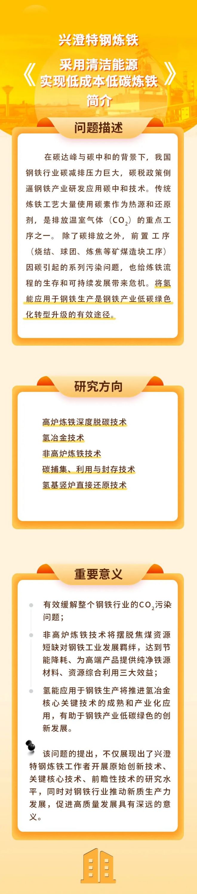 7月2日,在第二十六屆中國科協年會主論壇上,中國科協發布了2024年度重大科學問題、工程技術難題和產業技術問題目錄。興澄特鋼煉鐵事業部提報的“采用清潔能源實現低成本低碳煉鐵”項目被遴選為2024十大產業技術問題,成為鋼鐵行業唯一。