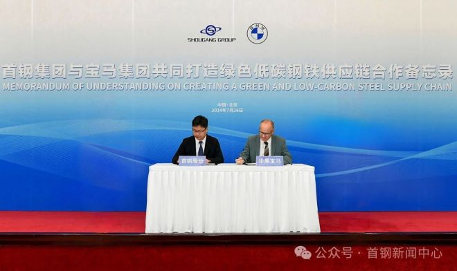 7月26日,首鋼集團與寶馬集團舉行《打造綠色低碳鋼鐵供應鏈合作備忘錄》簽約儀式。華晨寶馬副總裁杜林格,華晨寶馬采購總監福睿斯;首鋼集團黨委副書記、總經理邱銀富,集團總經理助理劉建輝,以及雙方有關部門領導參加簽約儀式。