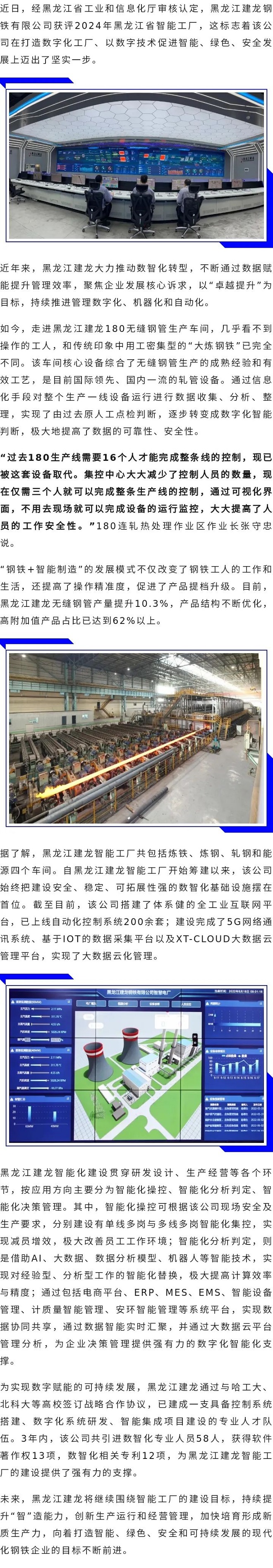 黑龍江建龍獲評2024年黑龍江省智能工廠