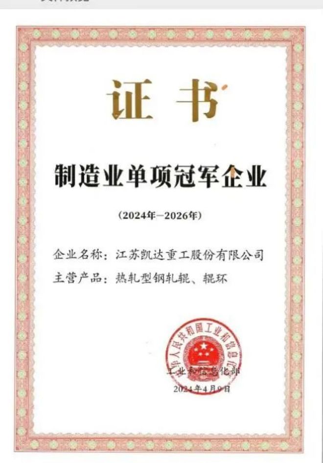 不久前,由中國工業經濟聯合會主辦的“2024年製造業單項冠軍企業經驗交流會”在廣東省東莞市舉辦。會上,江蘇凱達重工股份有限公司(下文簡稱“凱達重工”)榮獲了工業和信息化部頒發的“製造業單項冠軍企業”證書。