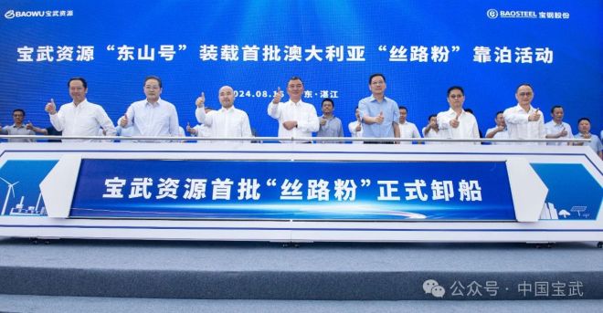 8月16日上午,寶武資源首艘海岬型散貨船“東山號”運載著首批澳大利亞“絲路粉”順利靠泊寶鋼股份湛江東山基地主原料碼頭,這標誌著“絲路粉”正式登陸中國市場。