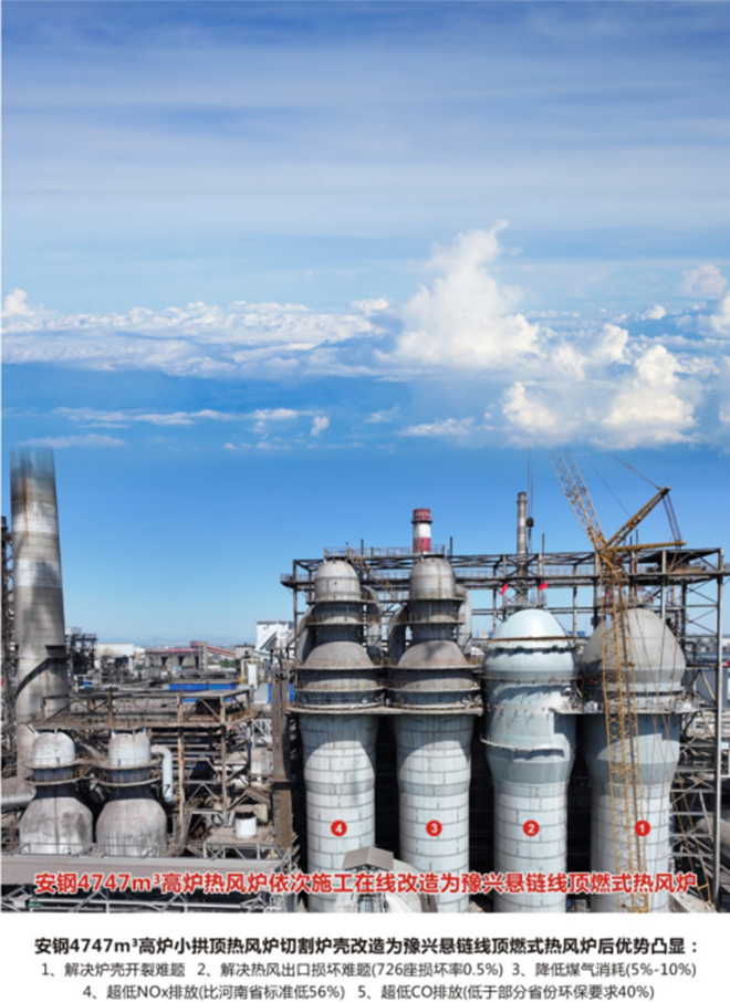 安鋼4747m³高爐小拱頂熱風爐切割爐殼改造為豫興懸鏈線頂燃式熱風爐後優勢凸顯