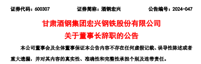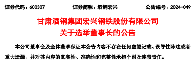 近日,酒鋼宏興發布了《酒鋼宏興:酒鋼宏興關於董事長辭職的公告》(以下簡稱《公告一》)和《酒鋼宏興:酒鋼宏興關於選舉董事長的公告》(以下簡稱《公告二》)。