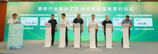 2024年7月25日,由中國鋼鐵工業協會指導,冶金工業信息標準研究院主辦,河北省發展和改革委員會、河北省工業和信息化廳支持,河北省鋼鐵產業綠色轉型聯盟、《世界金屬導報》承辦的第二屆鋼鐵行業先進工藝技術研討會在唐山南湖召開。豫興公司與東華鋼鐵正是借此會議的東風,在會上就這6座正在建設中的低氮低碳懸鏈線頂燃式熱風爐正式舉行了技術落地簽約儀式。