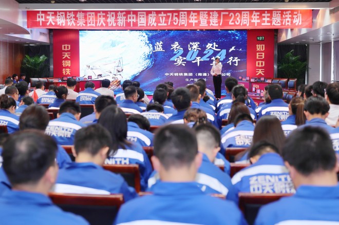 9月26日,中天鋼鐵集團慶祝新中國成立75周年暨建廠23周年主題活動盛大舉行。中天鋼鐵集團董事局主席、總裁、黨委書記董才平勉勵全員要樹立“文化興企”的理念,傳承和弘揚優秀中天文化,在全集團內掀起企業文化建設新浪潮,共同書寫中天鋼鐵新的輝煌篇章。
