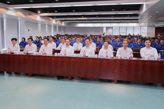 中天鋼鐵集團領導董才平、劉偉、周永平、趙金濤、李軍、王建偉、許九華、王郢、魏巍,三基地公司領導及黨群負責人、幹部職工代表等約200人出席活動。上午9點,全體起立高唱廠歌《我為中天煉優鋼》,豪情滿懷喜迎中天鋼鐵建廠23周年。