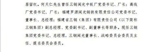 9月30日上午,三鋼集團公司召開幹部大會,福建省冶金控股公司領導宣讀任命決定:何天仁同誌任三鋼集團黨委書記、推薦為董事長、法定代表人人選。