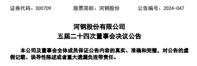 近日,河鋼股份發布了《河鋼股份有限公司五屆二十四次董事會決議公告》(以下簡稱《公告》)。